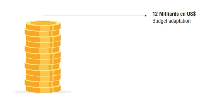 estimé à environ 22 milliards de dollars US, dont 12 milliards pour le volet adaptation.